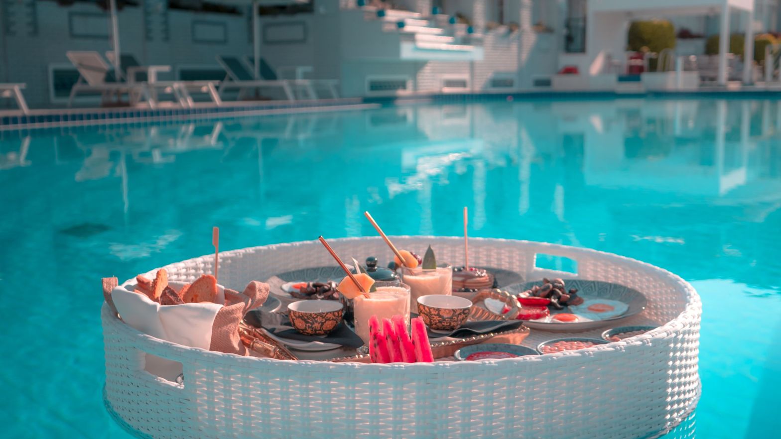 From 8:00 to 14:00 every day, the main swimming pool at Meandros becomes a colourful affordable luxury of gastronomic delight. Imagine lounging in the crystal-clear waters, surrounded by the tranquil ambiance of the poolside, while a floating breakfast of culinary delights floats gently towards you.